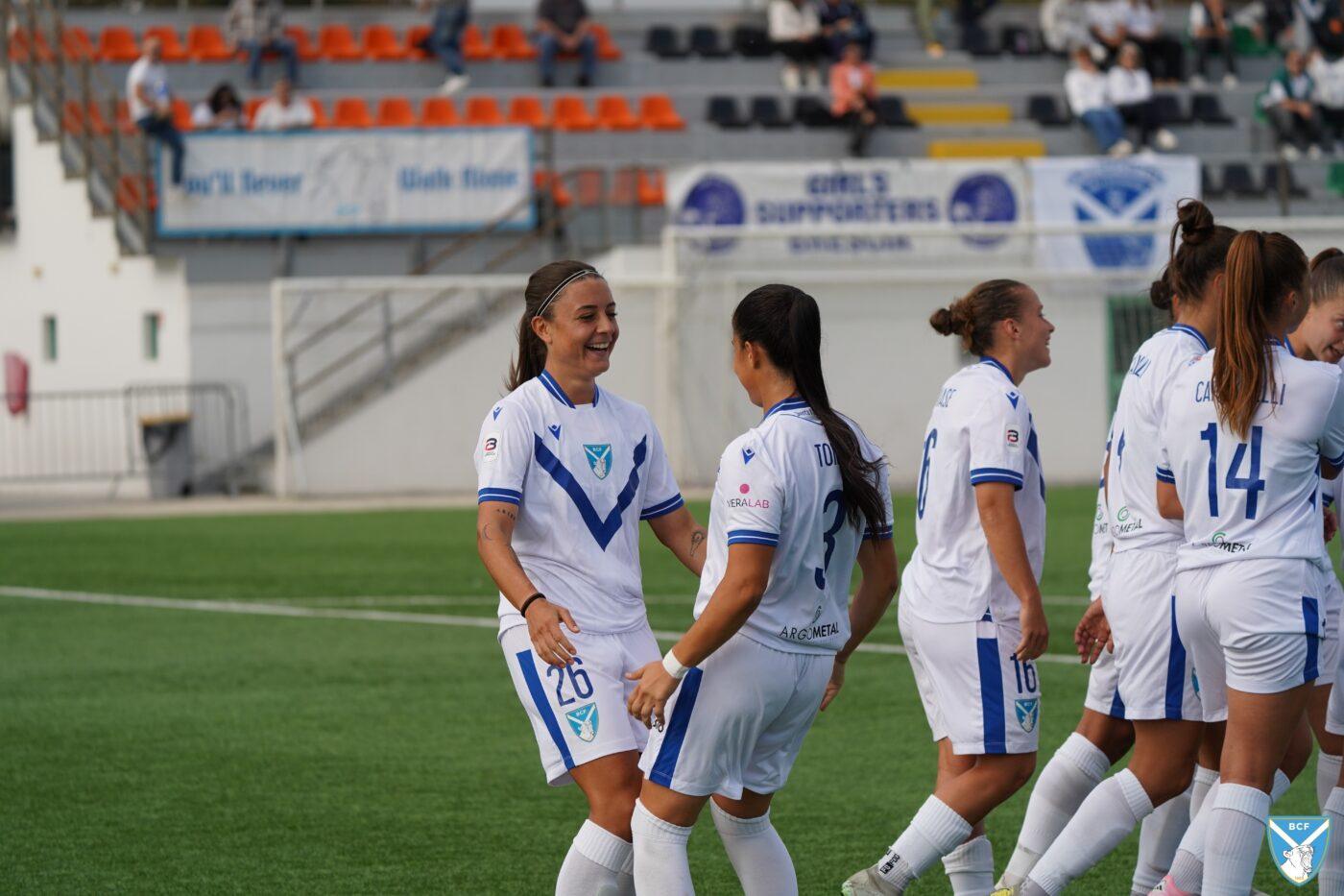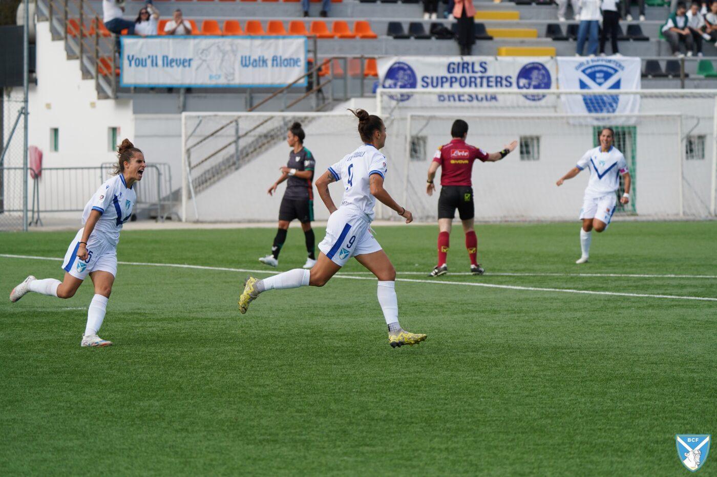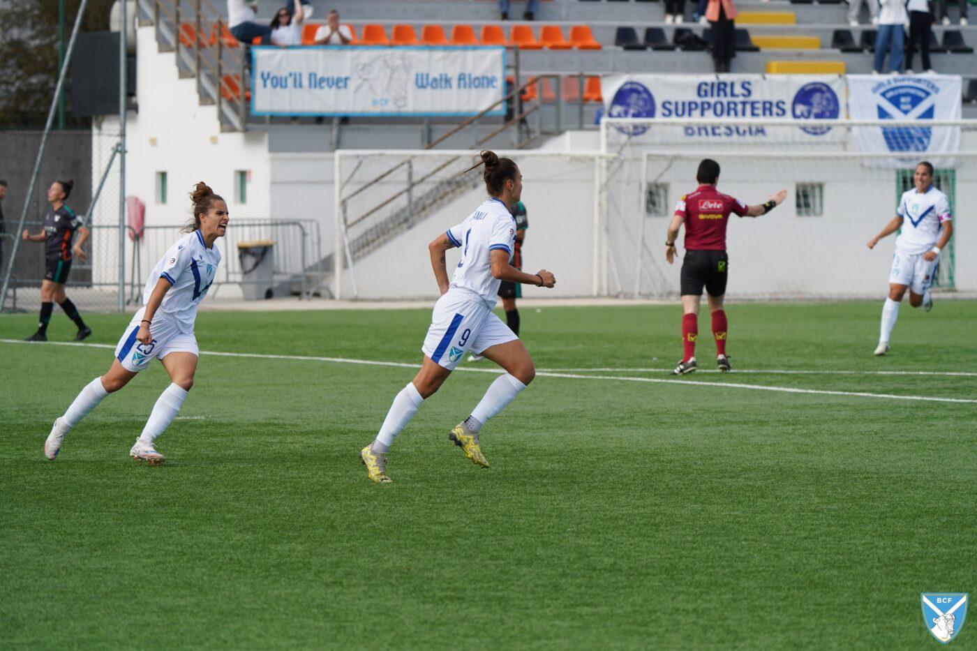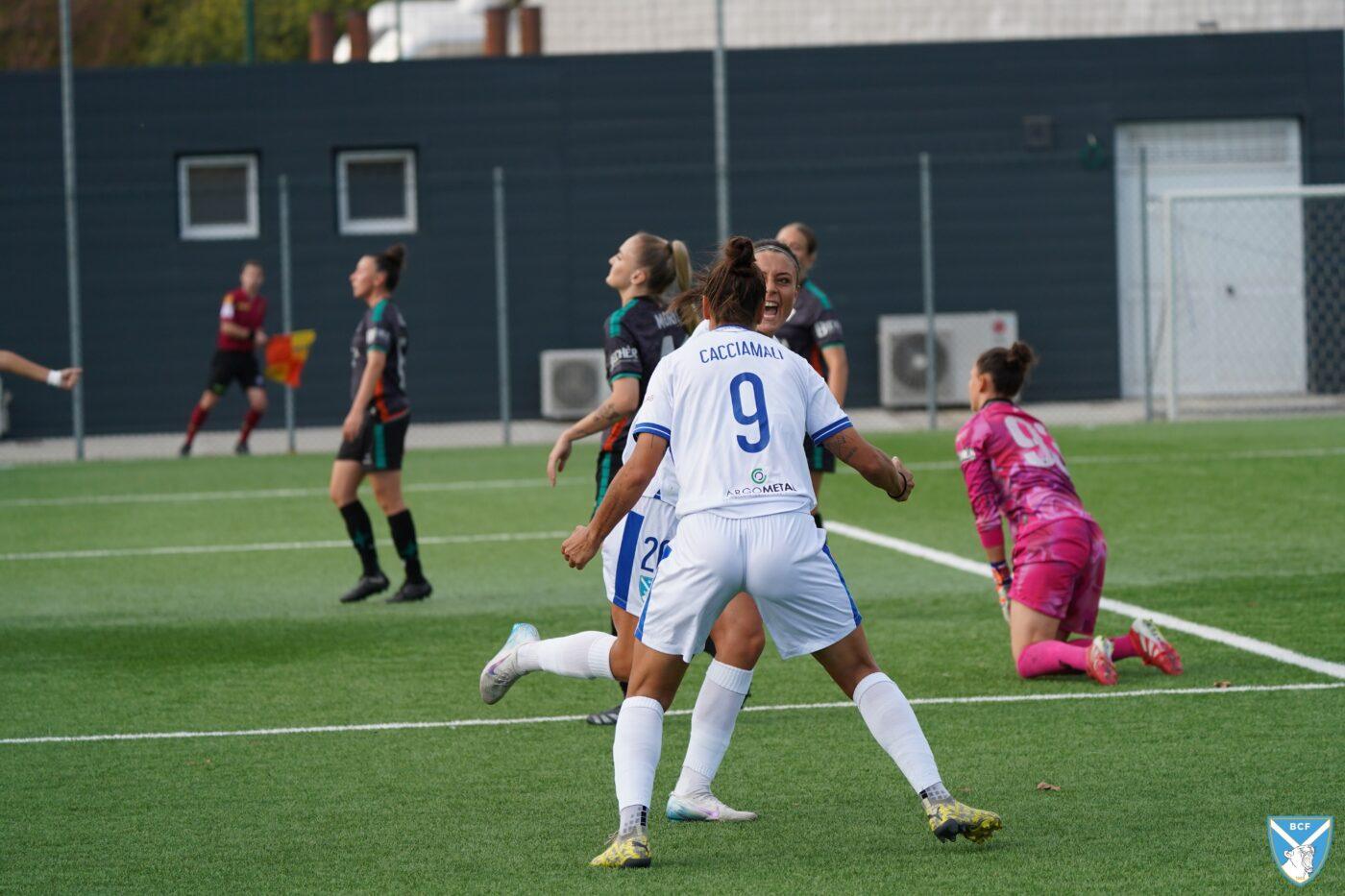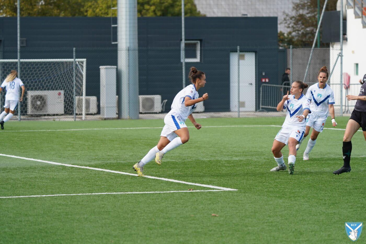 Il Brescia non perde però la calma e risponde subito con il proprio gioco ordinato e ragionato che, quattro minuti più tardi porta al pareggio: Micciarelli anticipa in difesa, serve Poli che confeziona un perfetto assist per Cacciamali, brava a trovare il gol dell’1-1, nonché il quarto personale centro stagionale.