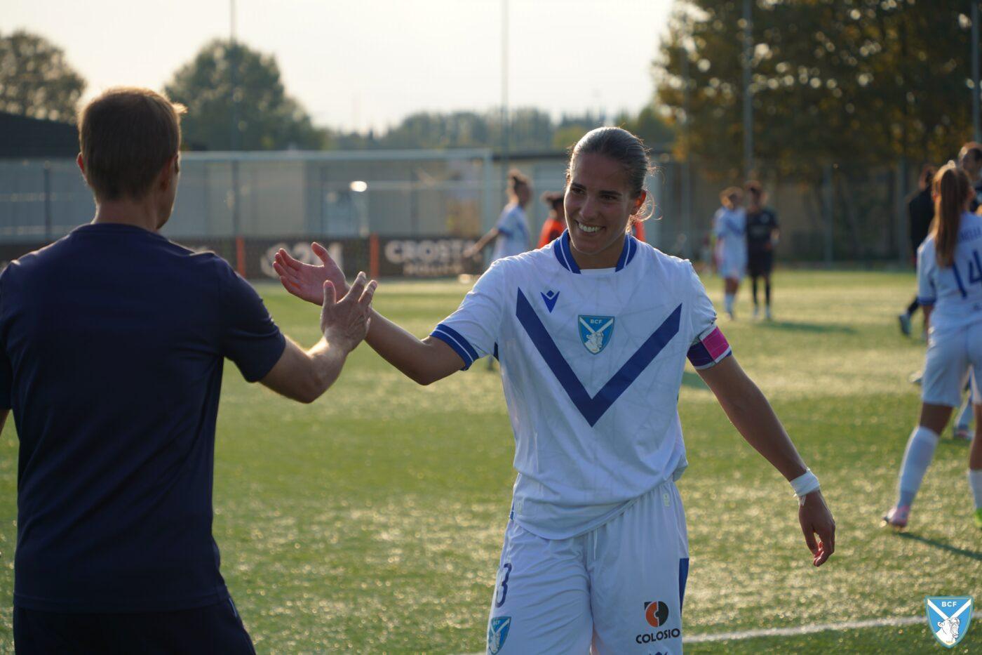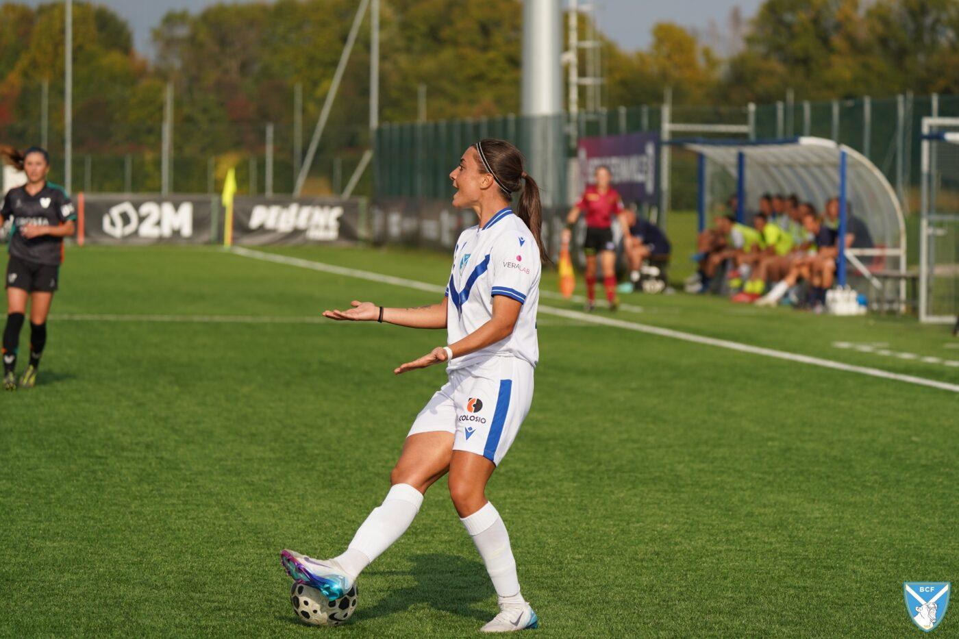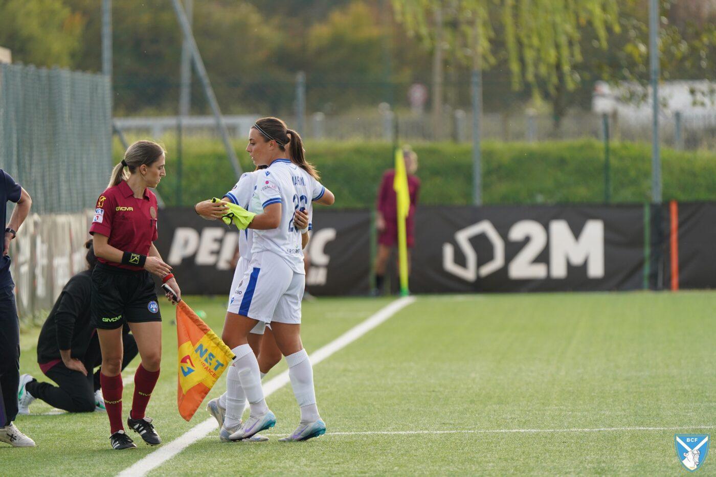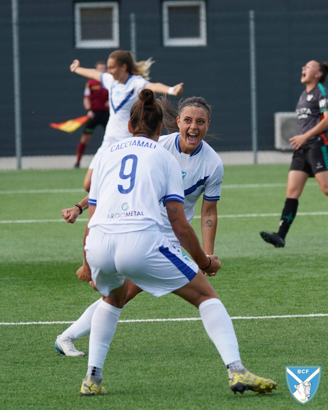 Il Brescia non perde però la calma e risponde subito con il proprio gioco ordinato e ragionato che, quattro minuti più tardi porta al pareggio: Micciarelli anticipa in difesa, serve Poli che confeziona un perfetto assist per Cacciamali, brava a trovare il gol dell’1-1, nonché il quarto personale centro stagionale.