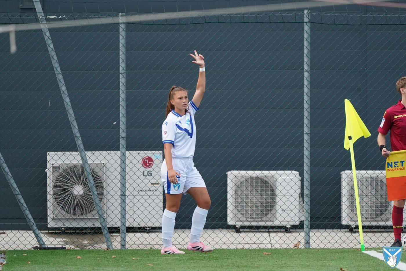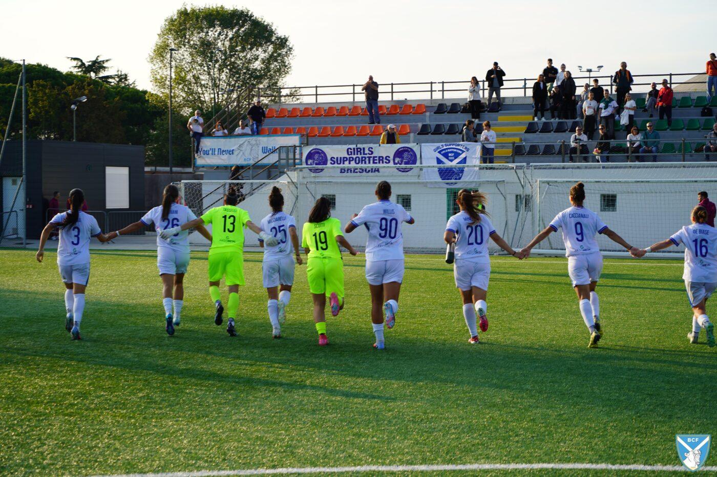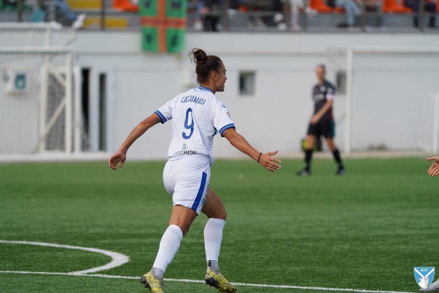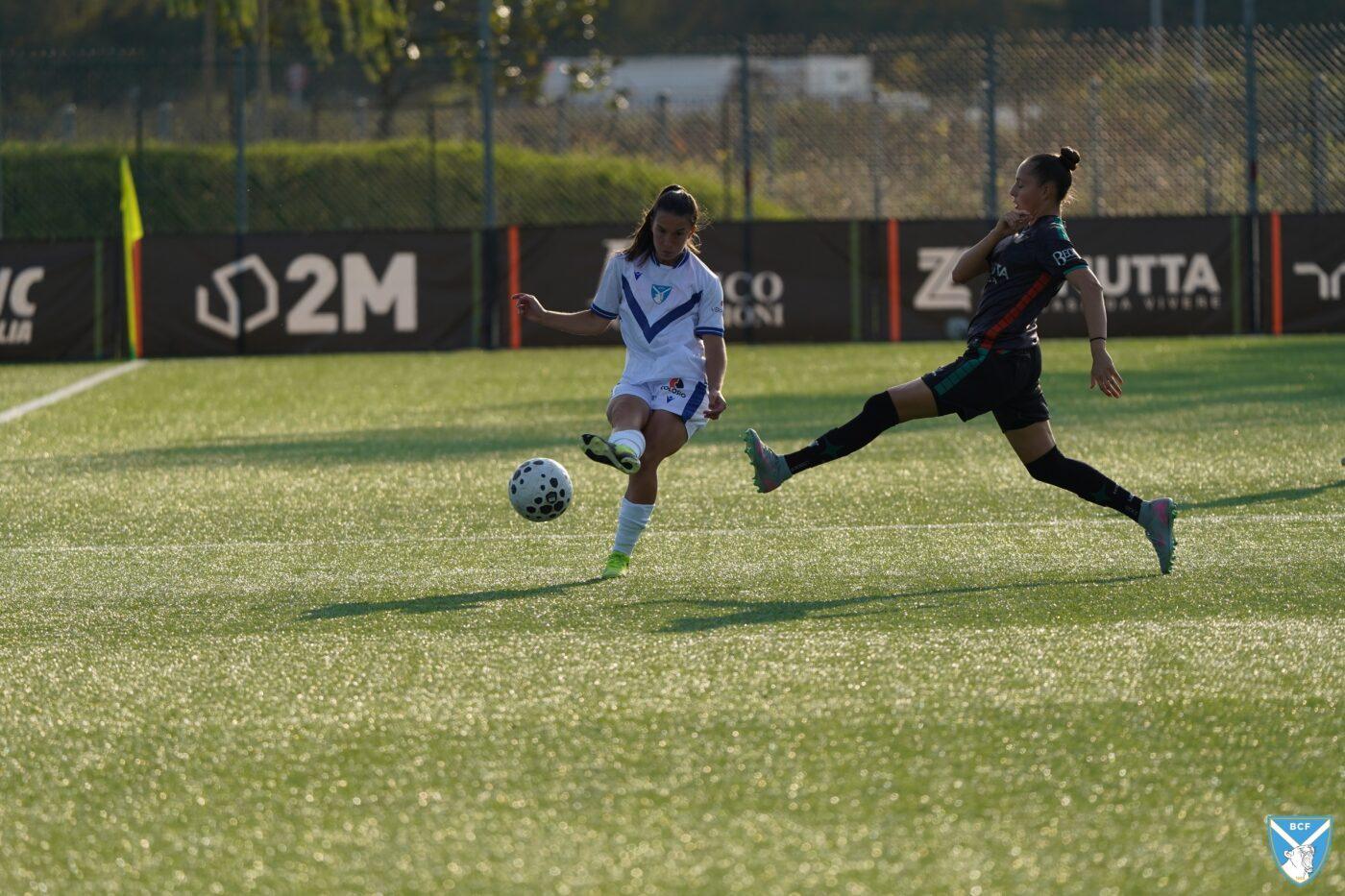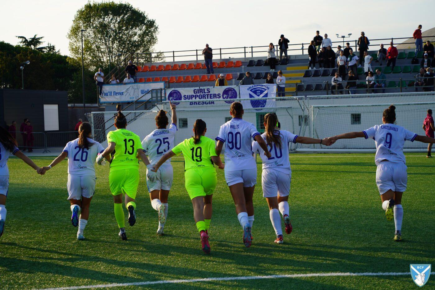 Il Brescia non perde però la calma e risponde subito con il proprio gioco ordinato e ragionato che, quattro minuti più tardi porta al pareggio: Micciarelli anticipa in difesa, serve Poli che confeziona un perfetto assist per Cacciamali, brava a trovare il gol dell’1-1, nonché il quarto personale centro stagionale.