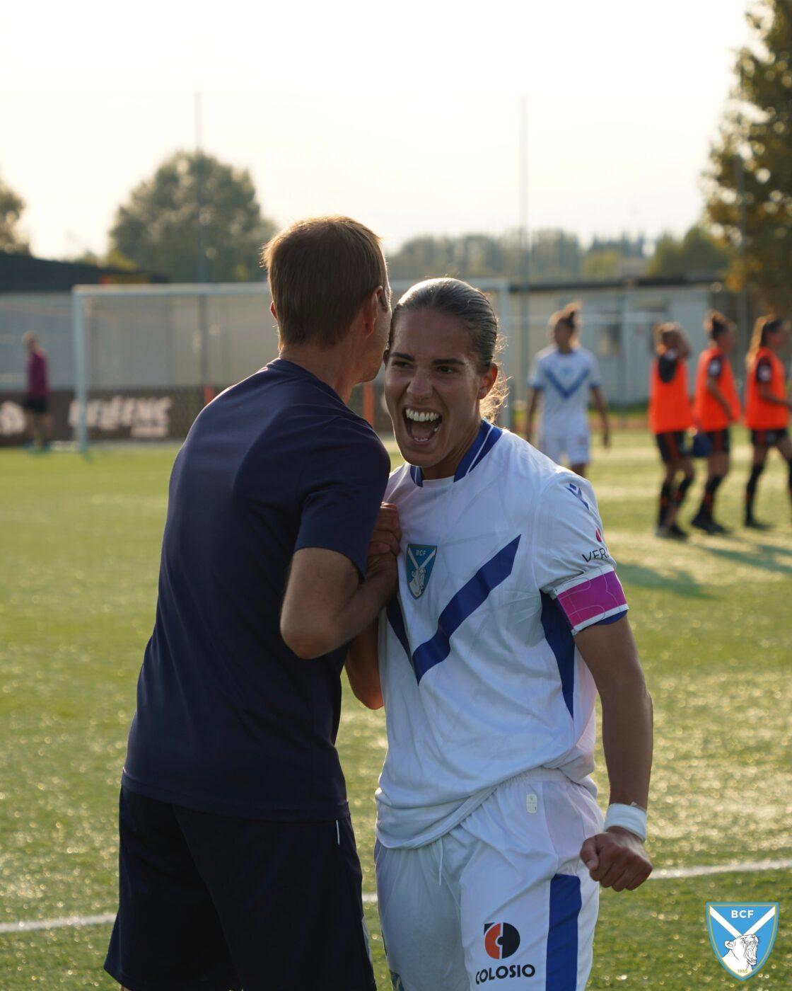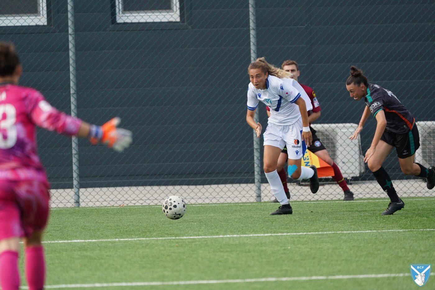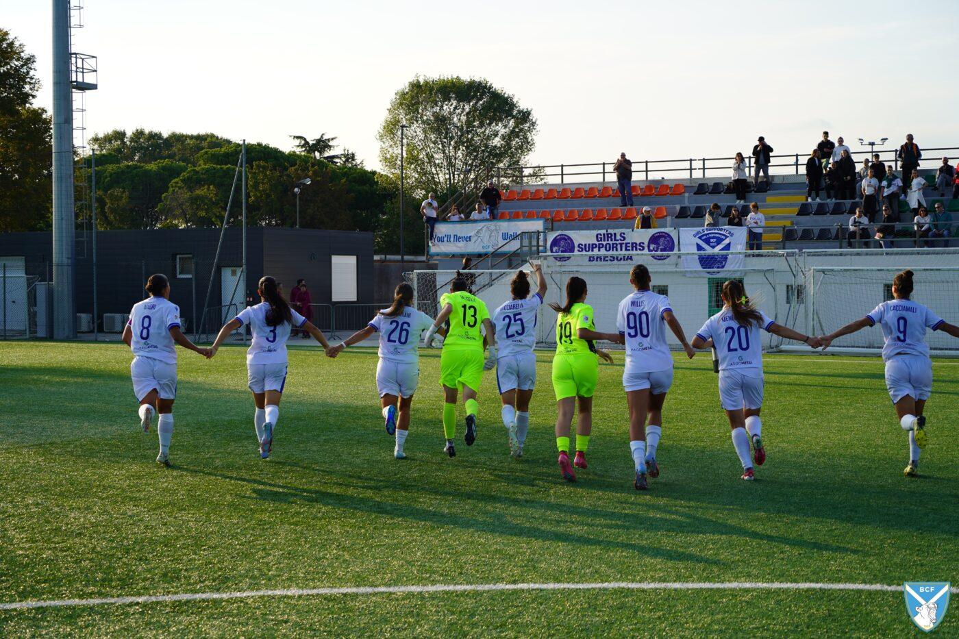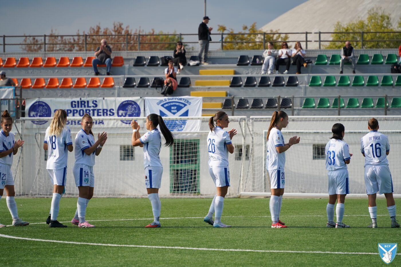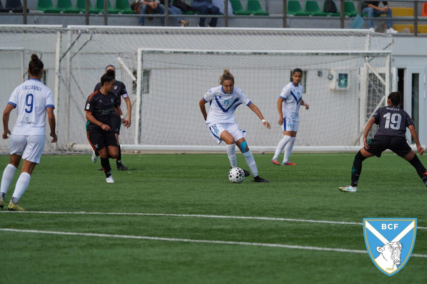 Il Brescia non perde però la calma e risponde subito con il proprio gioco ordinato e ragionato che, quattro minuti più tardi porta al pareggio: Micciarelli anticipa in difesa, serve Poli che confeziona un perfetto assist per Cacciamali, brava a trovare il gol dell’1-1, nonché il quarto personale centro stagionale.